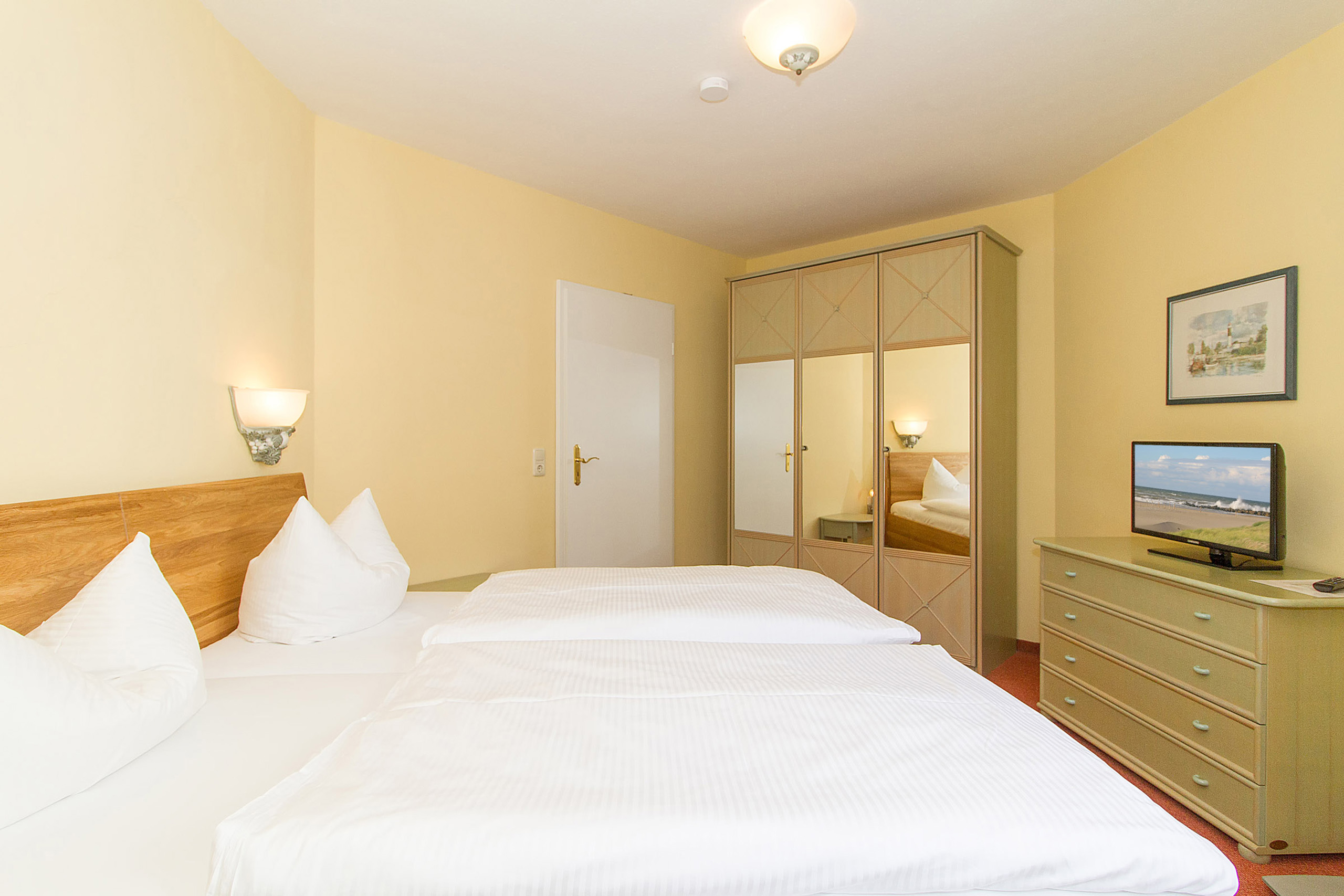 • Schlafzimmer mit Anrichte und 3 türiger Kleiderschrank, TV Gerät