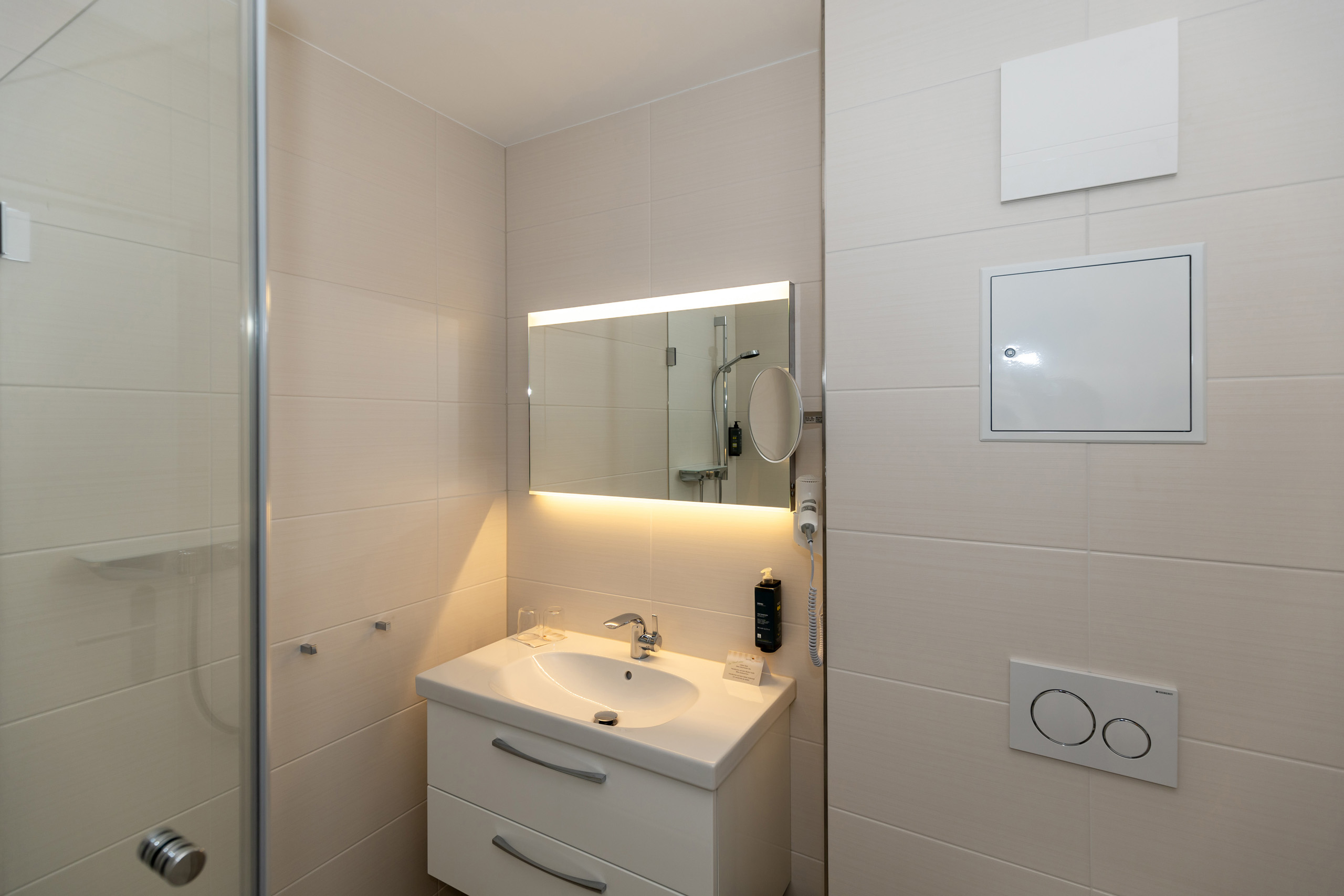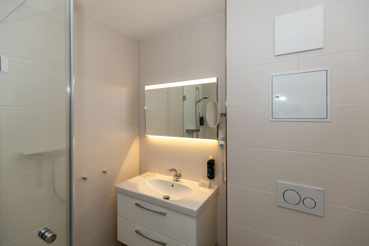 • Dusche, Waschtisch, WC, kein Fenster