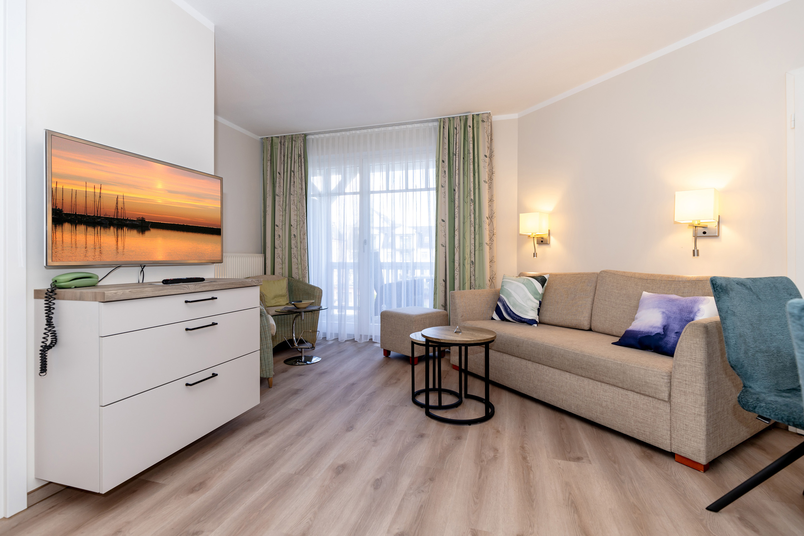 • aufgeteilt in Wohnzimmer mit Sofa, 1 oder 2 Sessel,