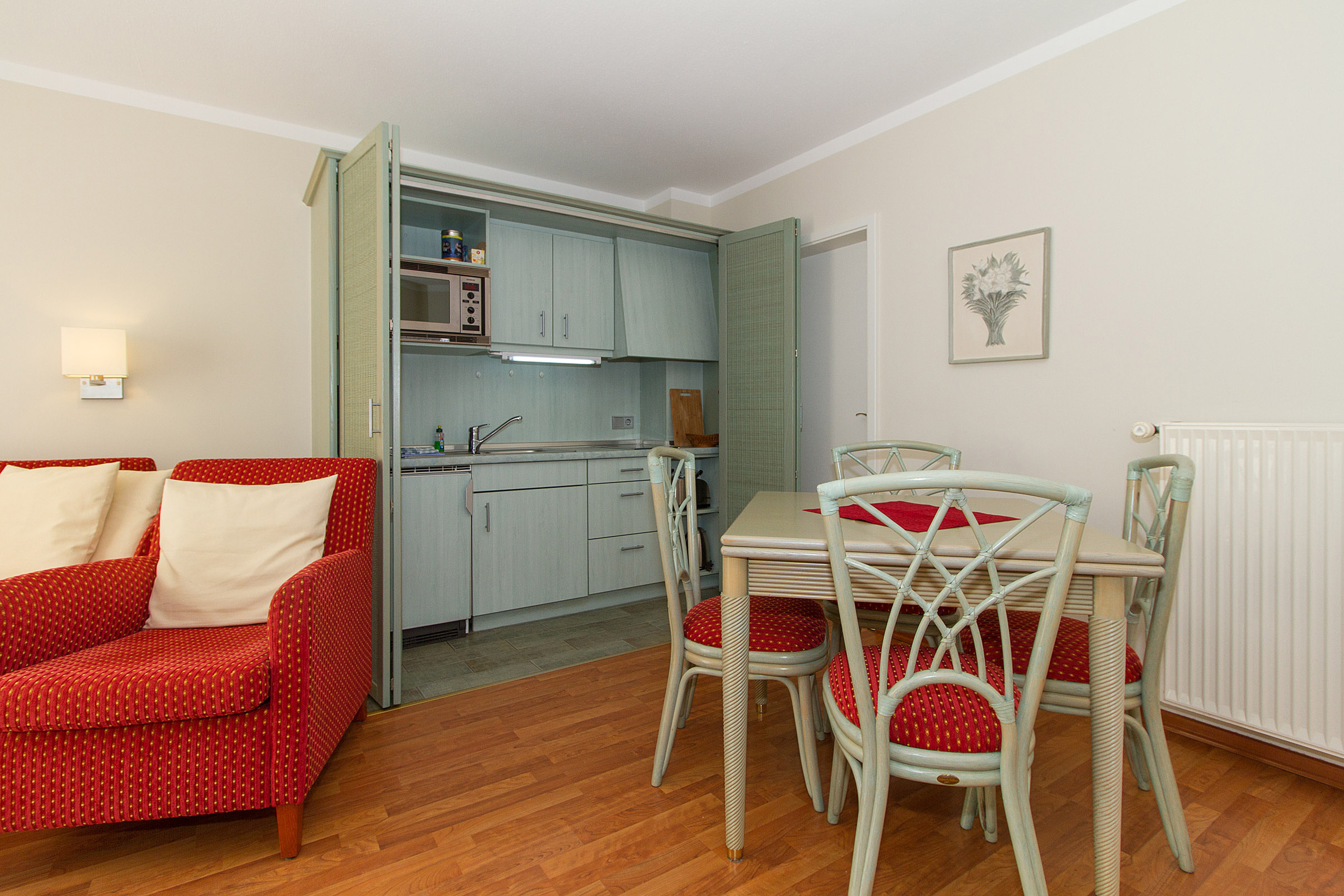 • aufgeteilt in Wohnzimmer mit Sofa, 1 oder 2 Sessel,
